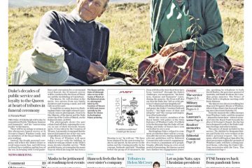 The Daily Telegraph leads on Prince Philip’s funeral with an unseen picture of him and the Queen in the Scottish Highlands in 2003.