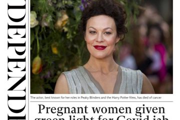 The Guardian splashes on pregnant women now being allowed a coronavirus jab. The paper also pays tribute to actress Helen McCrory who died of cancer.