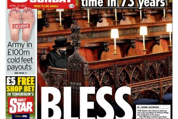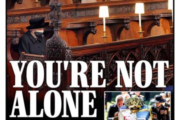 The Daily Express front page features a singular image of the Queen with a silhouette of Prince Philip behind her ahead of his funeral on Saturday.Its headline reads: “Always there for you ma’am.”