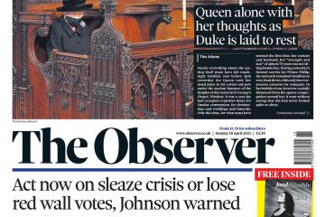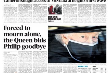 The Daily Telegraph leads on Prince Philip’s funeral with an unseen picture of him and the Queen in the Scottish Highlands in 2003.