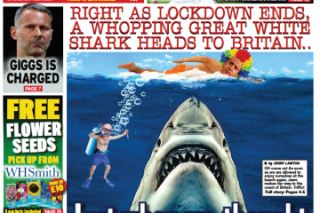 The Daily Star leads with the news that a great white shark could be heading towards the UK after it was tracked crossing the Atlantic Ocean.