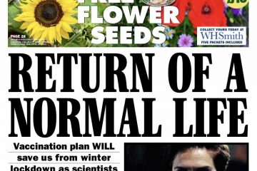 Half of the population is vaccinated, with the “return of normal life in full” on the way, according to the front of the Sunday Express.