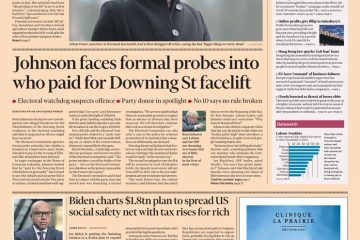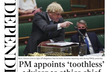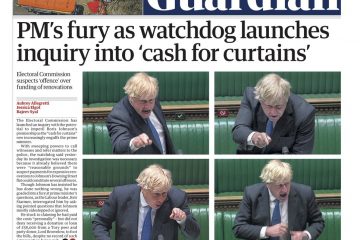 The Guardian features four pictures of a very angry-looking Boris Johnson as it says the Electoral Commission is investigating the refurbishment of the prime minister’s Downing Street flat.