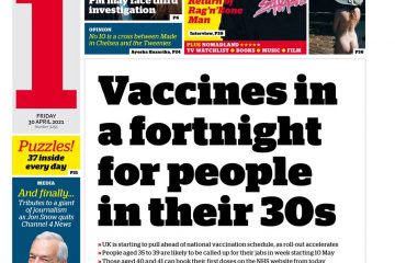 The Daily Telegraph says Boris Johnson will be told next week that social distancing can be scrapped from 21 June for large events after initial results from a pilot scheme found no spike in COVID cases among attendees.