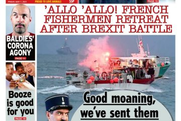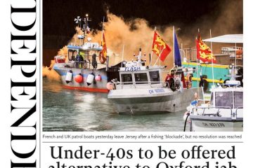 French trawlermen who blockaded Jersey in a battle over fishing rights rammed a pleasure boat, held up a cargo ship for four hours, and then retreated, going back home by lunchtime, reports Metro.