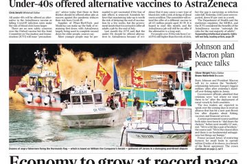 The Daily Express leads with the Bank of England’s claim that big-spending consumers will send the economy surging back to pre-COVID levels this year. Spurred on by the vaccine rollout, the boom will trigger the country’s fastest growth since the Second World War.