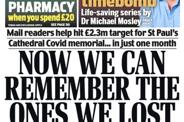 Saturday’s Daily Mail leads with the news that the paper’s campaign to raise money for a memorial at St Paul’s Cathedral, dedicated to those who died of COVID, has so far accumulated £2.3m.