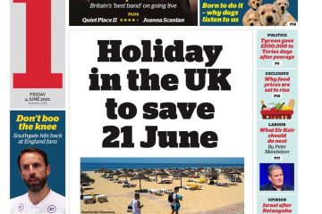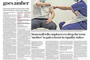 The Daily Mail’s front page says “Summer Holidays Plunged into Chaos” as no new countries placed on the travel green list. The paper says that Gibraltar is “the only realistic holiday destination which Britons can visit quarantine-free” due to strict entry requirements in other locations.
