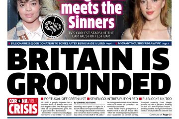 The latest changes to the UK’s traffic light travel list makes the lead story for the Metro. The paper splashes the headline “Britain Is Grounded”.