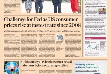 US consumer prices are rising at the fastest pace since 2008, presenting a challenge for the Federal Reserve – that’s on the front of the Financial Times.