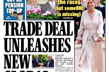 “A fantastic Brexit boost” is the lead in the Daily Express – it’s assessment of the UK’s new trade deal with Australia.