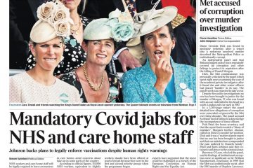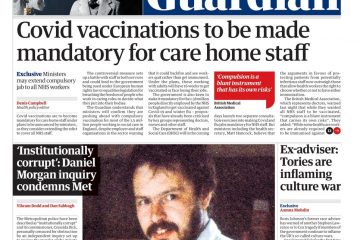 Boris Johnson is backing calls for NHS and care home staff to be given mandatory COVID vaccines – that’s the lead in The Times.