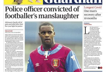 The family of Dalian Atkinson, who was killed by a police officer, have described their pain and relief after a five-year fight for justice – that’s on the front of The Guardian.