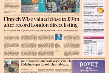 The Financial Times reports that British fintech firm Wise has been valued at nearly £9bn in a landmark direct listing in London, a rare coup for the UK market vying with Wall Street to attract the next wave of fast-growing tech companies.