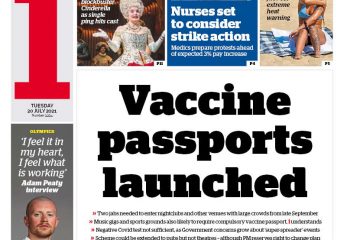 Daily Mirror Front Page 20th of July 2021