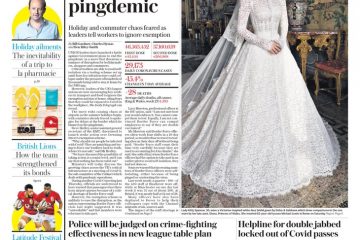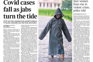 The Daily Express has gone with a similar story to The Times, saying coronavirus infections have fallen for the fifth day in a row, raising hopes that the third wave has peaked.