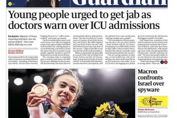 The Guardian says increasing numbers of young people with coronavirus are being admitted to hospital, with doctors begging them not to “suffer unnecessarily” and to get vaccinated.