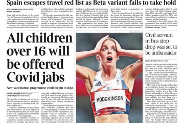 The Daily Mail leads on the news that all over-16s are to be offered coronavirus jabs, in a major shift of policy.