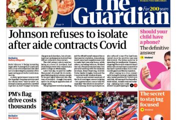 The Guardian leads with news that the prime minister failed to isolate during a tour of Scotland, despite a member of his team testing positive for COVID-19 during the trip.