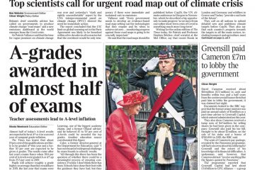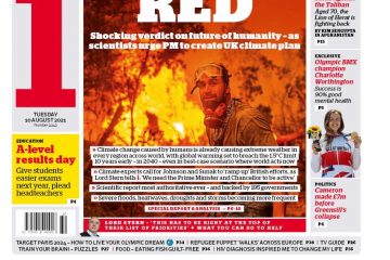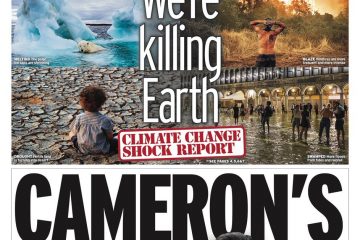 Similarly, the Daily Mirror goes in the “climate change shock report” with the headline “we’re killing Earth”. It also splashes on a report that David Cameron earned around £7.2m from Greensill Capital before the company went bust.