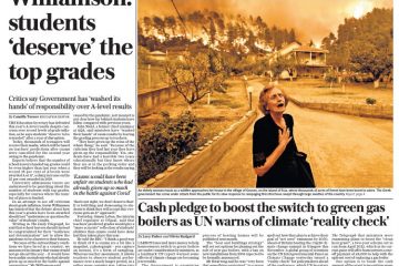 The Financial Times splashes on the warning that the world is likely to be 1.5C warmer by 2040, according to the UN’s science panel, which says it is “code red for humanity”.