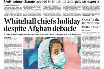 The Times leads with the story that three of Britain’s most senior civil servants, whose departments are overseeing the evacuation from Afghanistan, are on holiday.