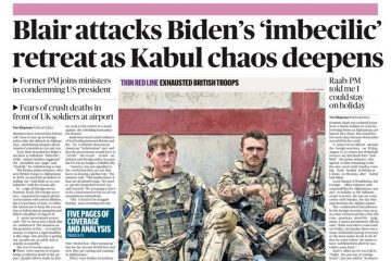The Sunday Telegraph leads with the story that former prime minister Tony Blair has launched a furious attack on the US president’s withdrawal from Afghanistan, calling it “imbecilic”.