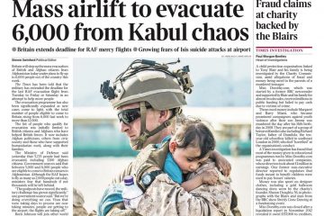 The Times writes that Britain will step up the mass evacuation of British and Afghan citizens from Afghanistan on Monday under plans to fly up to 6,000 people out of the country this week.