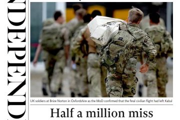 Britain out of Afghanistan – that’s the headline on the front of The Sunday Telegraph, as the final troops finally leave the country after 20 years.
