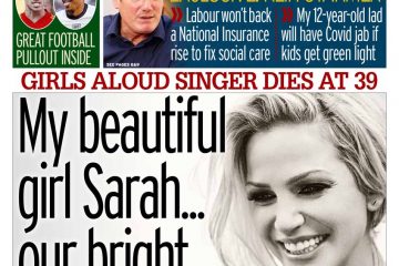 The death of Girls Aloud singer Sarah Harding, at the age of 39 from cancer, leads the front of the Daily Mirror.