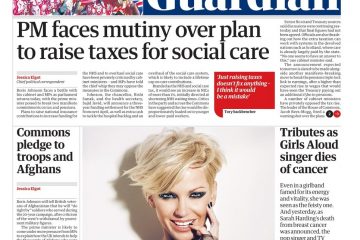 The Guardian says Boris Johnson faces a mutiny over his plans for a national insurance hike, with MPs set to oppose it in the Commons.