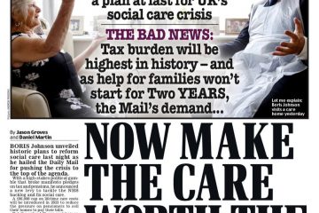 The Times is leading on Boris Johnson’s newly announced £12bn social care plan, which will see the tax burden rise to its highest level in 70 years.