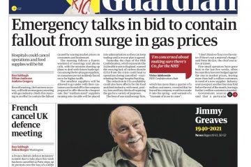 The Guardian writes that Business Secretary Kwasi Kwarteng will hold an emergency meeting with gas industry chiefs on Monday morning in an effort to contain the fallout caused by soaring market prices on consumers and businesses.