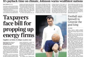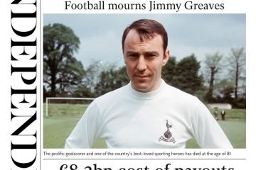 The Daily Mirror pays tribute to “one of England’s greatest strikers”, Jimmy Greaves, who died on Sunday aged 81.