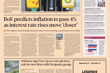 The Financial Times reports that the Bank Of England is predicting inflation will top 4% next year.