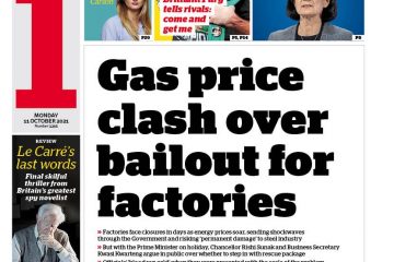 The Times leads with the Treasury’s accusation that the business secretary is “making things up” after he said he was in talks with the chancellor about helping businesses struggling with high energy prices.