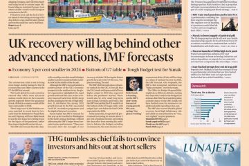 The UK’s recovery from coronavirus will lag behind other advanced nations according to IMF forecasts, reports the Financial Times.
