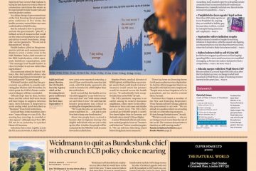 Sajid Javid said on 20 October that England is facing its last chance to avoid a return to COVID-19 restrictions, which feature on the front page of the Financial Times.