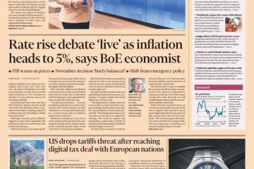 The Financial Times leads with a warning from the Bank of England’s new chief economist that inflation is likely to rise “close to or even slightly above five percent” early next year, which comes ahead of a decision on whether to raise interest rates.