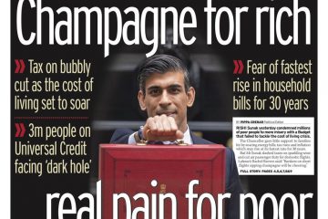The Daily Mirror has branded the chancellor’s announcement “the bankers’ budget” as “tax on bubbly was cut as the cost of living is set to soar”.