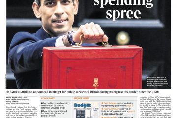 Rishi Sunak has claimed the Conservatives are the “real party of public services” as he announced a budget in which government spending will rise to highest sustained level since before Margaret Thatcher, The Times reports.