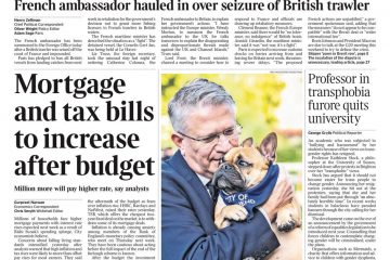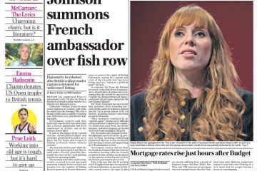 The Daily Telegraph reports on Britain summoning France’s ambassador to the UK after the French detained a British scallop trawler in a dispute over fishing licences.