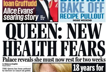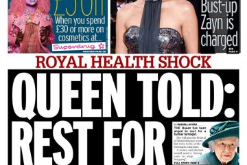 The Daily Mirror leads with the story about the Queen’s health concerns – as doctors have told her to rest for at least two weeks.