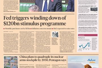 In the US, the Federal Reserve has said it will begin scaling back its $120bn monthly bond-buying programme this month, according to the front page of the Financial Times.