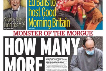 The paper splashes on the news that murderer David Fuller, a hospital electrician, sexually assaulted at least 100 dead women and girls in hospital mortuaries.