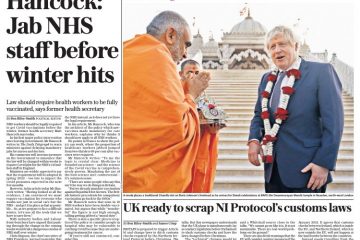 The Daily Telegraph reports on how former health secretary, Matt Hancock, believes NHS workers should be legally required to get Covid vaccinations before the winter.