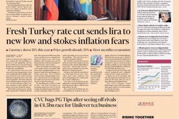 Turkey cut interest rates again yesterday sending the lira tumbling to a “record low”, according to the Financial Times.