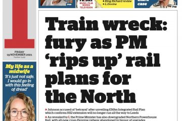 The Independent reports more than 20 million Britons will miss out on promised high-speed rail improvements, as critics say the north “will suffer for generations”.