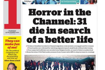 The Independent also leads on the migrant deaths in the Channel, where children were among those who died.