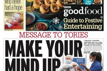 The Daily Mirror reports on confusion and chaos over Christmas plans as the number of Omicron cases grows.